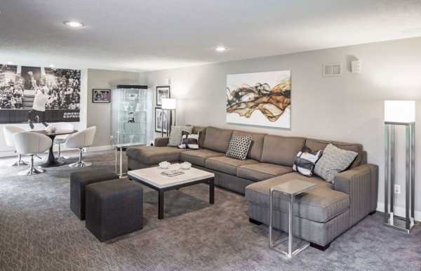 В подобном случае нет необходимости задумываться над декорированием стен – разрешается либо одна фотография, либо обычная однотонная стена. Для разнообразия комнаты можно использовать интересные пуфы или журнальный столик. Не лишним будут и вазоны с живыми цветами в небольшом количестве.