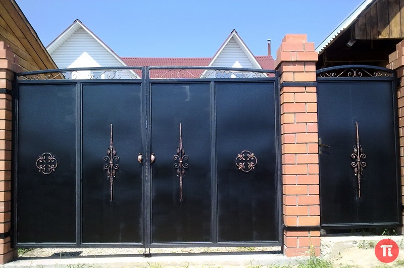 - Ворота из профнастила в сочетании с коваными элементами