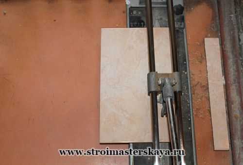 - Плитка укладывается на твердую поверхность и по отмеченной линии от дальнего угла к себе плиткорезом выполняется разрез.
