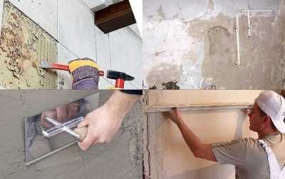 В случае обнаружения вздутостей, штукатурку сбивают до материала стены и перештукатуривают поверхность. Затем проверяем стену на вертикальность и при необходимости производим выравнивание «ухода» стены от вертикали штукатуркой или шпаклёвкой.