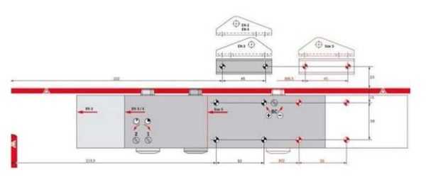 2. Для нормальной работы механизма главное – максимально точно определить его местоположение на двери и обеспечить его прочное прилегание к полотну. Для упрощения монтажа к каждому доводчику прикладывается монтажная схема (шаблон) с масштабом 1:1. Ее прикладывают точно к дверному полотну, а затем размечают места расположения отверстий для крепления.