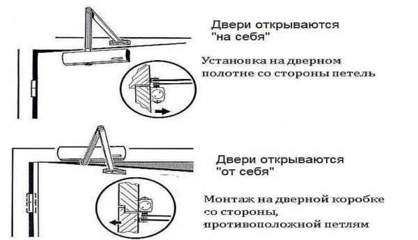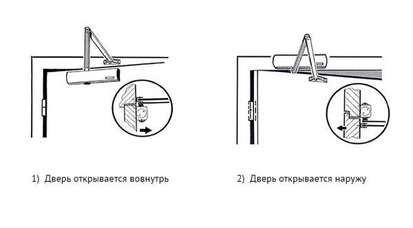 Установка доводчика на дверь в зависимости от направления открывания