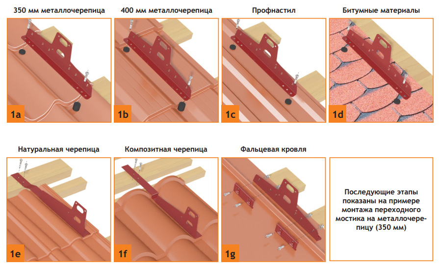 Существуют также различные типы установки в зависимости от типа снегозадержателя.