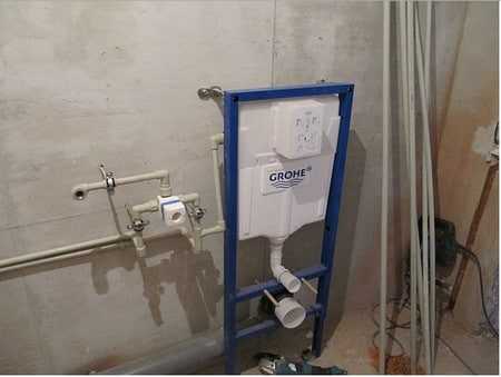 Инсталляционная система готова. Далее следует собрать пластиковые патрубки и отводы, а также согласовать их с канализацией и водопроводом.