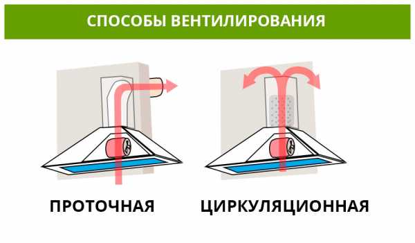 Кроме вида крепления, вытяжки различаются режимами вентиляции.