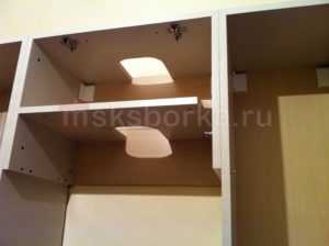 После крепления полки на требуемом уровне шкаф устанавливают на прежнее место.