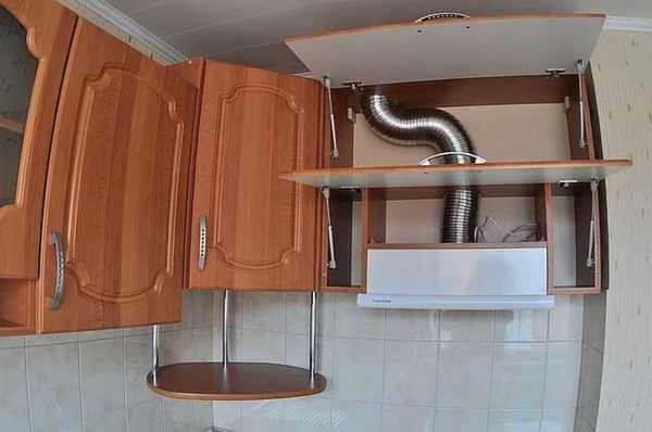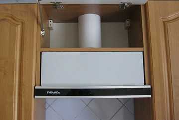 ВАЖНО! Конструкция вытяжки должна быть встраиваемой внутрь навесного шкафа. Купольные, подстраиваемые, подвесные и подобные, которые можно встроить, потребуют переделки мебели, а впоследствии изменения интерьера кухни.