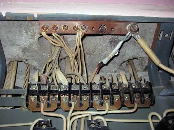 Для этого откройте электрический щиток со счетчиками и найдите там замурованную трубу в стене, откуда идут провода (будьте осторожны, провода под напряжением 220В!), либо специальную шину, как показано на фото. Скорее всего, вы найдете на ней готовый штырь и уже накинутые нулевые провода. Это и есть глухая нейтраль, труба отлично заземлена. Нужно провести от неё на кухню многожильный провод сечением не менее 2,5 мм2, а вытяжку подключить через автомат-разделитель на 6.3А.