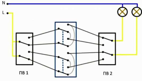 Подключение проходных двухклавишных переключателей
