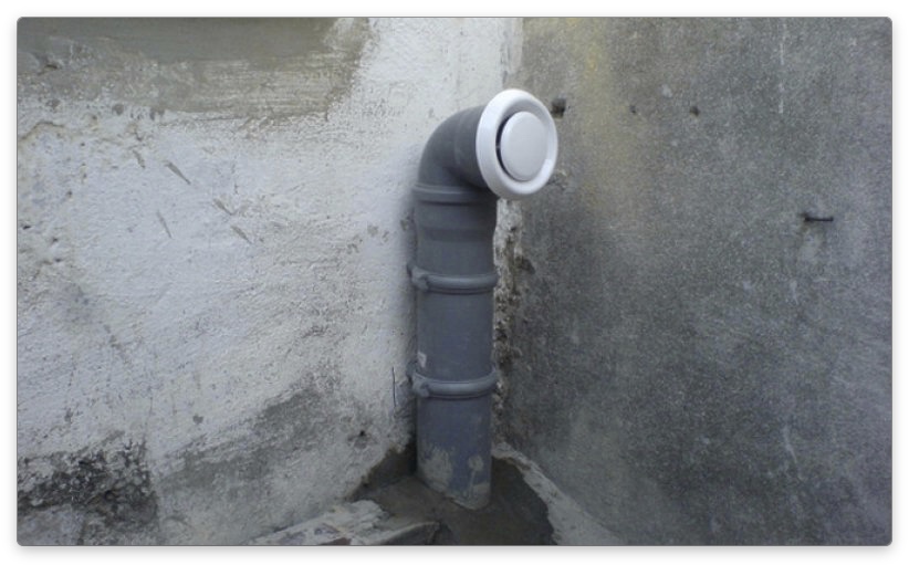 Свободный конец вытяжной вентиляционной трубы выводят наружу и поднимают примерно на 1,5 м выше конька. Когда выполняется вентиляция погреба под домом, часто применяются канализационные пластиковые трубы. Их диаметра вполне достаточно, чтобы отлично справиться с вентиляционными функциями.