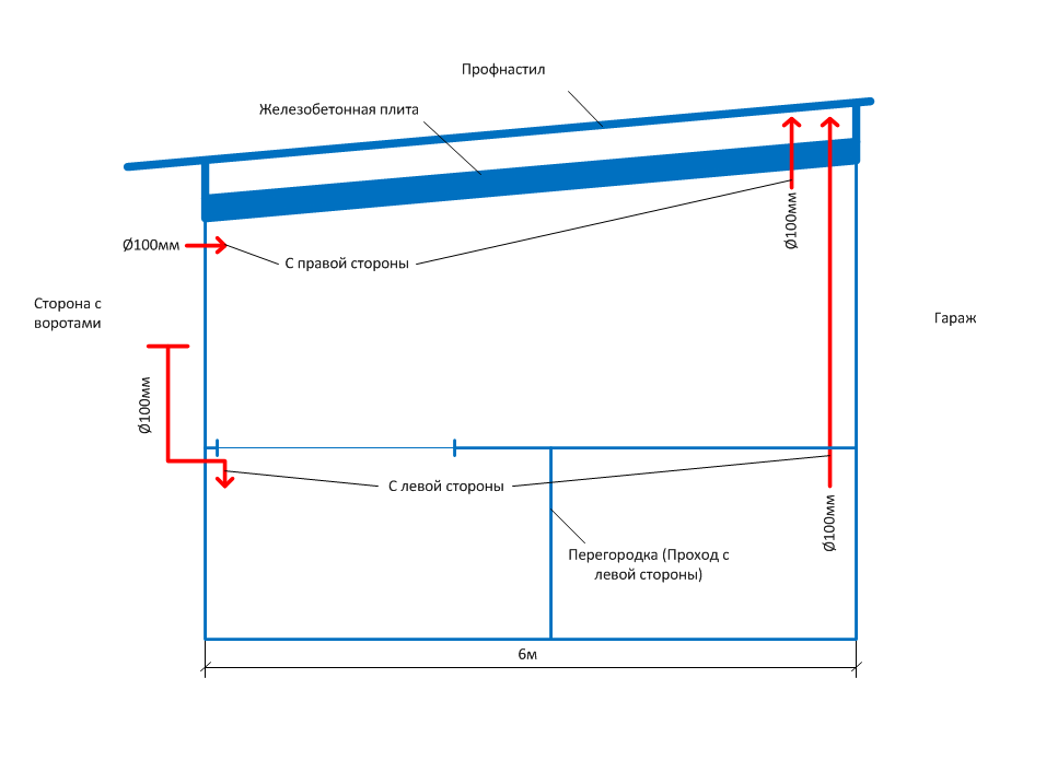 На противоположной стороне комнаты монтируют входное отверстие, которое через воздуховод выводят на улицу, на высоту 0.5 метра от уровня земли.
