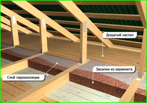 Но этот материал впитывает влагу, а потому обязательно под него надо положить гидроизоляцию. Слой керамзита может быть до 30 сантиметров. Сверху него кладется покрытие чердачного пола.