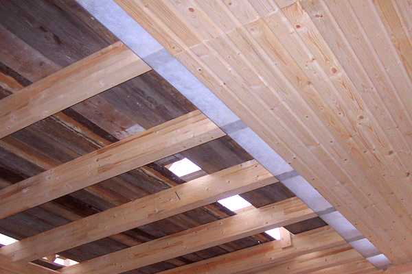 В основном бани строятся из дерева или кирпича, но перекрытия чердака и кровли всегда выполняют из деревянных балок. Обустройство кровли бани выполняется двумя способами: с наличием чердачного пространства или без него. Более выгодное положение у бань, которые имеют чердачное перекрытие. Ведь тёплый воздух, подымаясь вверх, на своём пути встречает несколько преград: чердак, напичканный, как пирог, слоями утеплителя и воздушную подушку между чердаком и кровлей.