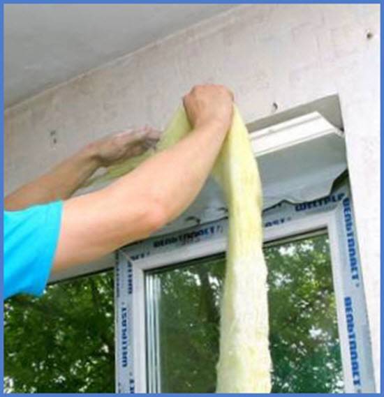 - поместите в образовавшиеся щели теплоизоляционный материал;