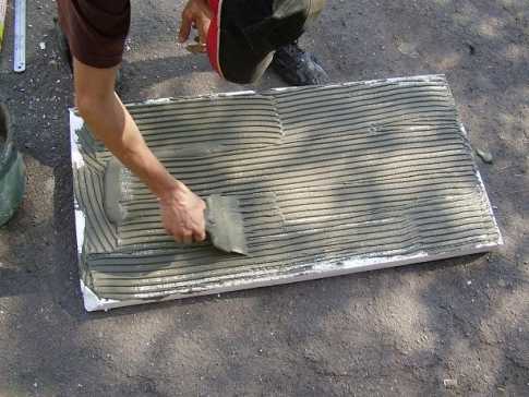 Существует несколько методов нанесения клея на пенопластовую плиту. Смесь может наноситься с помощью зубчатого шпателя по всей поверхности плиты.