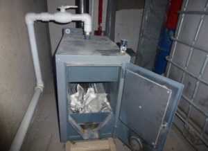 - Газовый котел или печка. Такое устройство высокопродуктивно и более экономично, чем электрическая печь, но для ее сооружения нужно иметь возможность подключиться к линии газоснабжения или установить баллон. Также нужно учитывать повышенную взрывоопасность газа, поэтому при монтаже и подключении не обойтись без помощи специалистов.