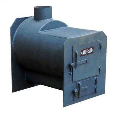 - Буржуйка на дровах. Печка на твердом топливе (угле, дровах) также пользуется заслуженной популярностью для отопления дач, гаражей и т.д. Ее легко сделать своими руками из подручных материалов, например, ненужных труб и бочек, поэтому и обойдется она недорого. Но, если нет желания или соответствующих навыков, то ее можно приобрести в готовом виде, благо на рынке имеется большой выбор такого оборудования от отечественных и зарубежных производителей.