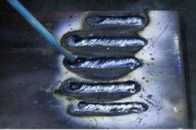 После того, как без проблем получается зажечь и поддержать дугу, пора переходить к наплавлению валика. Зажигаем дугу, медленно и плавно перемещаем по горизонтали электрод, выполняя им легкие колебательные движения. Расплавленный металл при этом как будто «подгребается» к самому центру дуги. В результате должен получиться крепкий шов с небольшими волнами, образованными наплавленным металлом.