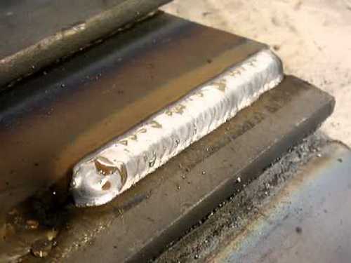 Если в процессе сваривания деталей электрод выгорел практически полностью, а шов еще не завершен, работу временно прекращаем. Меняем использованный элемент на новый, удаляем шлак и продолжаем работу. На расстоянии порядка 12 мм от образовавшегося в конце шва углубления, которое еще называют кратером, зажигаем дугу. Электрод подносим к углублению так, чтобы образовывался сплав из металла старого и вновь установленного электрода, после чего сварка шва продолжается.