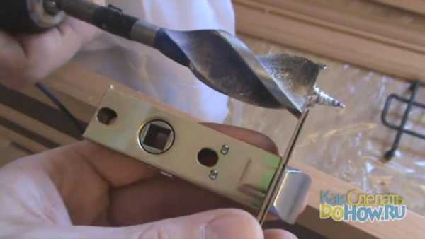 На этом работы по установке замка не заканчиваются, так как необходимо проделать ещё отверстия под ручки с обеих сторон устанавливаемой двери. Делается это всё той же дрелью со сверлом. Как я уже говорил, важно в обоих случаях учитывать нужный диаметр сверла.