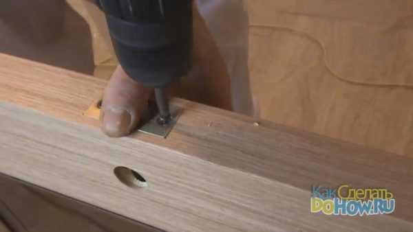При необходимости округлые края можно откорректировать с помощью стамески. Засверливаем места крепления ответной части защёлки и прикручиваем её шурупами.