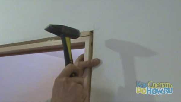 Если при забивании вставки элементы коробки сместились, их можно выровнять всё тем же молотком. Бить по корпусу следует по приложенной к нему деревянной планке.