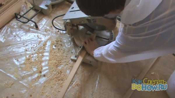 Приступим к процессу сборки дверной коробки. Сразу нужно аккуратно обрезать под прямым углом торцы брусков.