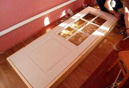 Будем ставить самые простые двери, сделанные из ДВП, со стеклянным окошком.