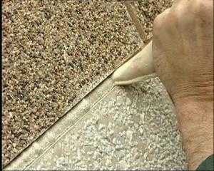ΠΠΎΡΠ»Π΅ ΠΎΠ±ΡΠ°Π±ΠΎΡΠΊΠΈ ΠΎΠ΄Π½ΠΎΠ³ΠΎ-Π΄Π²ΡΡ ΠΊΠ²Π°Π΄ΡΠ°ΡΠΎΠ² ΠΏΠ»ΠΎΡΠ°Π΄ΠΈ Π½Π°ΠΏΠΎΠ»ΡΠ½ΠΎΠ³ΠΎ ΠΏΠΎΠΊΡΡΡΠΈΡ, ΡΡΠ°ΡΡΠΎΠΊ ΠΎΡΠΈΡΠ°ΡΡ ΠΎΡ Π·Π°ΡΠΈΡΠΊΠΈ ΡΠ΅ΠΏΠ»ΠΎΠΉ Π²ΠΎΠ΄ΠΎΠΉ ΠΈΠ»ΠΈ ΡΠΏΠ΅ΡΠΈΠ°Π»ΡΠ½ΡΠΌΠΈ ΡΡΠ΅Π΄ΡΡΠ²Π°ΠΌΠΈ. ΠΠ»Ρ Π½Π°ΠΏΠΎΠ»Π½Π΅Π½ΠΈΡ ΡΠ°ΡΡΠ²ΠΎΡΠΎΠΌ ΠΌΠΎΠΆΠ½ΠΎ ΠΈΡΠΏΠΎΠ»ΡΠ·ΠΎΠ²Π°ΡΡ ΡΡΡΠΎΠΈΡΠ΅Π»ΡΠ½ΡΠΉ ΠΌΠ΅ΡΠΎΠΊ (ΠΊΠΎΠ½ΡΡ). Π Π½Π΅Π³ΠΎ ΠΏΠΎΠΌΠ΅ΡΠ°ΡΡ Π½ΡΠΆΠ½ΠΎΠ΅ ΠΊΠΎΠ»ΠΈΡΠ΅ΡΡΠ²ΠΎ ΠΏΠ°ΡΡΡ ΠΈ Π²ΡΠ΄Π°Π²Π»ΠΈΠ²Π°ΡΡ Π² Π·Π°Π·ΠΎΡΡ, ΠΏΠΎΠ΄ΡΠ°Π²Π½ΠΈΠ²Π°Ρ ΡΠΌΠ΅ΡΡ ΡΠ΅ΡΠΊΠΎΠΉ ΠΈΠ»ΠΈ ΡΠΏΠ°ΡΠ΅Π»Π΅ΠΌ. Π§Π΅ΡΠ΅Π· 15-20 ΠΌΠΈΠ½ΡΡ ΠΏΠΎ ΡΠ²Π°ΠΌ Π½ΡΠΆΠ½ΠΎ ΠΏΡΠΎΠΉΡΠΈΡΡ Π²Π»Π°ΠΆΠ½ΠΎΠΉ Π³ΡΠ±ΠΊΠΎΠΉ, ΡΡΠΎΠ±Ρ Π²ΡΡΠ°Π²Π½ΡΡΡ ΡΠΌΠ΅ΡΡ ΠΈ Π·Π°Π²Π΅ΡΡΠΈΡΡ ΡΡΠ³ΠΎΠ²Π°Π½ΠΈΠ΅. ΠΠΎΠΊΠ° ΡΠΎΡΡΠ°Π² ΠΏΠΎΠ΄ΡΡΡ Π°Π΅Ρ, ΠΏΡΠΈΡΡΡΠΏΠ°ΡΡ ΠΊ ΠΎΠ±ΡΠ°Π±ΠΎΡΠΊΠ΅ ΡΠ»Π΅Π΄ΡΡΡΠ΅Π³ΠΎ ΠΊΠ²Π°Π΄ΡΠ°ΡΠ°. ΠΡΠ»ΠΈ ΠΈΡΠΏΠΎΠ»ΡΠ·ΡΠ΅ΡΡΡ ΡΠΏΠΎΠΊΡΠΈΠ΄Π½ΡΠΉ ΠΌΠ°ΡΠ΅ΡΠΈΠ°Π», Π·Π°ΠΌΠ΅ΡΠΈΠ²Π°ΡΡ ΠΏΠ°ΡΡΡ Π² ΡΠ°ΠΊΠΎΠΌ ΠΊΠΎΠ»ΠΈΡΠ΅ΡΡΠ²Π΅, ΡΡΠΎΠ±Ρ Π²ΡΡΠ°Π±ΠΎΡΠ°ΡΡ ΡΠ°ΡΡΠ²ΠΎΡ Π² ΡΠ΅ΡΠ΅Π½ΠΈΠ΅ ΡΠ°ΡΠ°. Π¨ΠΎΠ² ΡΡΠΈΡΠ°Π΅ΡΡΡ ΠΈΠ΄Π΅Π°Π»ΡΠ½ΡΠΌ, Π΅ΡΠ»ΠΈ ΠΎΠ½ ΡΡΠΎΠΏΠ»Π΅Π½ ΠΎΡΠ½ΠΎΡΠΈΡΠ΅Π»ΡΠ½ΠΎ ΡΡΡΠΊΠΎΠ² ΠΏΠ»ΠΈΡΠΊΠΈ ΠΈ ΠΈΠΌΠ΅Π΅Ρ Π³Π»Π°Π΄ΠΊΡΡ ΡΡΡΡΠΊΡΡΡΡ.