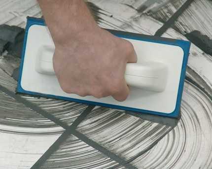 ΠΠ°Π»ΡΠ½Π΅ΠΉΡΠΈΠΉ ΠΏΡΠΎΡΠ΅ΡΡ Π·Π°ΠΊΠ»ΡΡΠ°Π΅ΡΡΡ Π² Π·Π°ΠΏΠΎΠ»Π½Π΅Π½ΠΈΠΈ Π·Π°Π·ΠΎΡΠΎΠ² ΠΌΠ΅ΠΆΠ΄Ρ ΠΏΠ»ΠΈΡΠΊΠ°ΠΌΠΈ. ΠΠ°ΡΠΈΡΠΊΠ° Π½Π°ΠΏΠΎΠ»ΡΠ½ΠΎΠΉ ΠΏΠ»ΠΈΡΠΊΠΈ Π½Π° ΡΠ²Π°Ρ Π²ΡΠΏΠΎΠ»Π½ΡΠ΅ΡΡΡ ΠΏΠΎ Π΄ΠΈΠ°Π³ΠΎΠ½Π°Π»ΠΈ, ΠΏΡΠΈΡΠ΅ΠΌ Π½Π°ΡΠΈΠ½Π°ΡΡ ΡΠ°Π±ΠΎΡΡ Π½ΡΠΆΠ½ΠΎ ΠΈΠ· Π΄Π°Π»ΡΠ½Π΅Π³ΠΎ ΡΠ³Π»Π° ΠΊΠΎΠΌΠ½Π°ΡΡ, ΠΏΠ΅ΡΠ΅ΠΌΠ΅ΡΠ°ΡΡΡ ΠΊΠΎ Π²Ρ ΠΎΠ΄Ρ Π² ΠΏΠΎΠΌΠ΅ΡΠ΅Π½ΠΈΠ΅. ΠΡΠΈΡΠ°ΡΡ ΡΠΌΠ΅ΡΡ Π½ΡΠΆΠ½ΠΎ Ρ Π½Π°ΠΆΠΈΠΌΠΎΠΌ, ΠΏΠΎΠ»Π½ΠΎΡΡΡΡ Π·Π°ΠΏΠΎΠ»Π½ΡΡ ΠΏΡΡΡΠΎΡΡ ΠΌΠ΅ΠΆΠ΄Ρ ΡΡΠ°Π³ΠΌΠ΅Π½ΡΠ°ΠΌΠΈ Π½Π°ΠΏΠΎΠ»ΡΠ½ΠΎΠ³ΠΎ ΠΏΠΎΠΊΡΡΡΠΈΡ. ΠΠΎΡΠ»Π΅ ΠΏΠΎΠ΄Π³ΠΎΡΠΎΠ²ΠΊΠΈ ΠΎΡΠ½ΠΎΠ²Π°Π½ΠΈΡ, Π·Π°ΡΠΈΡΠΊΡ ΡΠ²ΠΎΠ² ΠΏΠ»ΠΈΡΠΊΠΈ Π² Π²Π°Π½Π½ΠΎΠΉ ΠΊΠΎΠΌΠ½Π°ΡΠ΅ ΡΠ²ΠΎΠΈΠΌΠΈ ΡΡΠΊΠ°ΠΌΠΈ Π²ΡΠΏΠΎΠ»Π½ΡΡΡ ΡΠ»Π΅Π΄ΡΡΡΠΈΠΌ ΠΎΠ±ΡΠ°Π·ΠΎΠΌ: