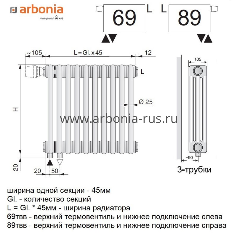 У радиаторов разных моделей нижний коллектор может располагаться на расстоянии от 200 до 800 мм от верхнего.