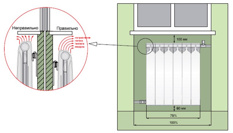 Рабочее давление у биметаллических изделий от 16 до 35 атм. Они подойдут под любую систему. Данные отопительные приборы не тяжёлые: радиатор, который имеет межосевое расстояние 500 мм и весит всего 1,6-1,7 кг. При выборе необходимой высоты прибора следует учитывать отступ в 15 см от поверхности пола и от подоконника.