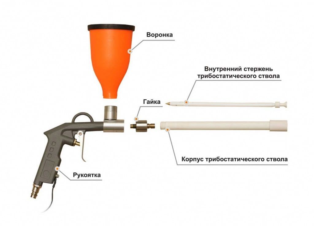 Работает в тандеме с компрессором. Резервуар для жидкости располагается сверху или снизу. Эта особенность определяет насколько удобно работать с инструментом.