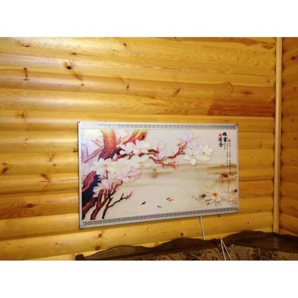 Что касается инфракрасных пленочных обогревателей, то они представляют собой тонкий нагревательный элемент из пленки и фольги. Такие обогреватели нередко выполняются в виде ковриков или настенных картин (дизайн у таких картин, впрочем, сомнительный). Нашлось им применение и в качестве «теплого пола». Мощность инфракрасных пленочных обогревателей обычно не превышает 400-500 Вт.