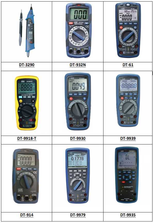 Для измерения электрических показателей часто используются универсальные мультиметры (тестеры), токовые клещи DT 266, которые являются портативной компактной моделью прибора. Все мультиметры имеют схожую конструкцию за исключением некоторых отличительных особенностей. Обычный тестер состоит из: