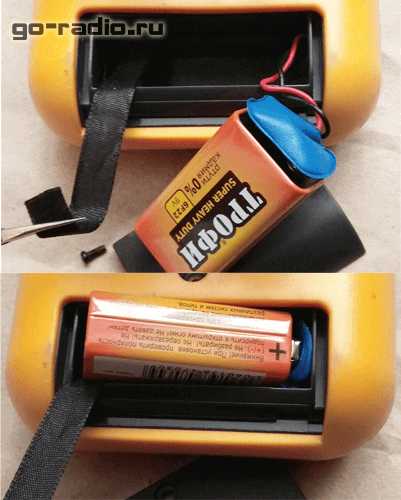 Подсветка дисплея включается нажатием на кнопку B/L («Back Light») и подсвечивает показания всего на несколько секунд. Потом кнопку необходимо нажать повторно. С одной стороны это хорошо, так как экономится заряд батарейки. Если прибор не используется некоторое время, то он автоматически выключается. Это функция автовыключения (AUTO POWER OFF). Очень полезная штука, так как 9-ти вольтовые батарейки 6F22, которые используются как источник питания тестера, не отличаются большой ёмкостью и очень быстро садятся.