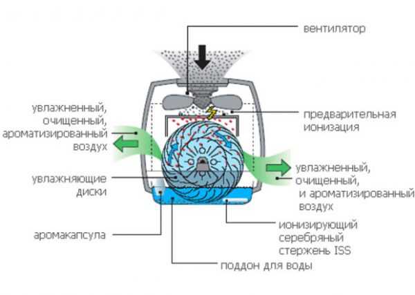 Схематическое изображение устройства увлажнителя-мойки наглядно демонстрирует наличие ряда дополнительных возможностей