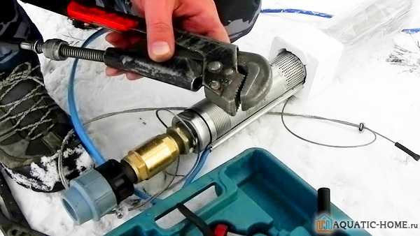 Глубинный насос перед установкой клапана нужно оснастить фильтром первичной очистки. Приемный запорный механизм насоса требует надежной защиты, поэтому клапан соединяют резьбой с перфорированной обоймой из нержавейки.