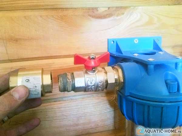 Проводить монтаж запорной арматуры вблизи водяного счетчика нужно предельно аккуратно, чтобы не повредить пломбу, установленную работниками ЖКХ.