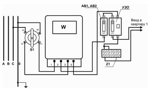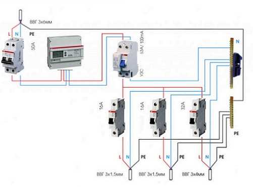 Выгодным с точки зрения монтажа электрооборудования является максимальное расположение УЗО к точке ввода. В квартире устройство устанавливают сразу после электросчетчика. Это связано с регламентированным постоянным контролем обслуживания потребителей электроэнергии. Если в этажном щитке специальный провод защитного заземления РЕ отсутствует, необходимо сделать проводку трехжильной.