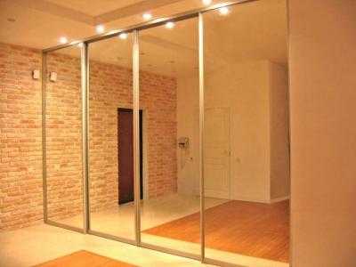 - Зеркальные – исполнение более привычное для шкафов, но используется и в качестве дверной конструкции. Зеркало незаменимо в тех случаях, когда требуется визуально увеличить пространство. Реализуется вариант и одностворчатой и двустворчатой двери, а также со створками скрытыми в стене.