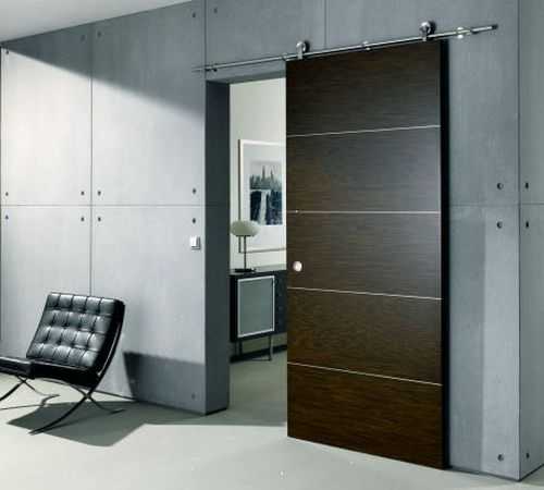 Механизм раздвижной системы позволяет установить дверное полотно весом до 100 кг, что открывает большой простор для выбора. Ограничение в этом вопросе связано исключительно с требованиями дизайна.