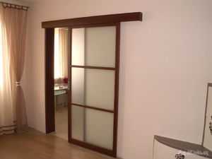 Механизм работы таких межкомнатных дверей аналогичен устройству конструкций в купейных вагонах или шкафах-купе. То есть дверца не открывается как обычно, а движется вбок — параллельно стене. Такие межкомнатные изделия отлично смотрятся в малогабаритных квартирах или домах с узкими коридорами.