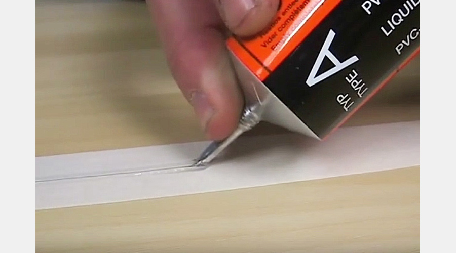 После разметки стыка ручкой и уголком или рейкой поверхность винилового пола слегка царапается ножом.