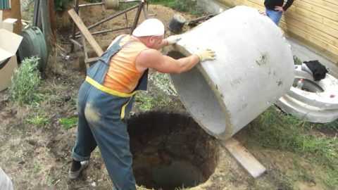 После разработки достаточно глубины принимаются за формирования дна. Затем кольца с помощью кантования и механического оборудования опускают внутрь ямы и корректируют их положение. Кольца монтируют одно за другим, пока полностью не завершат работу. Последнее должно возвышаться над уровнем земли на 70-100 см.