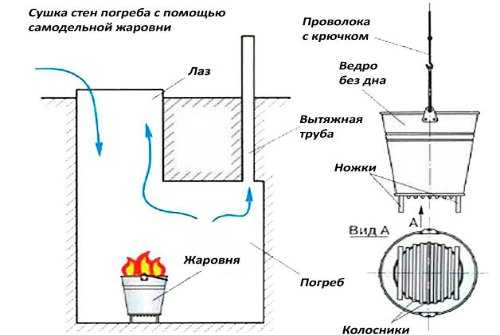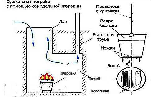Сушка погреба с помощью самодельной жаровни