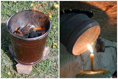 Ускорить просушку поможет старое металлическое ведро. Поставьте его посередине и разведите в нем огонь, который нужно поддерживать до высыхания стен. Горячий от огня воздух быстро вытеснит затхлость, а дым – продезинфицирует помещение, уничтожив плесень и бактерии. Пропадут от дыма и насекомые.