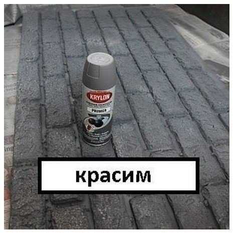 — Красим получившуюся облицовку. В зазоры между кирпичами наносим большее количество краски, достигая таким способом лучшего сходства с кирпичной кладкой.