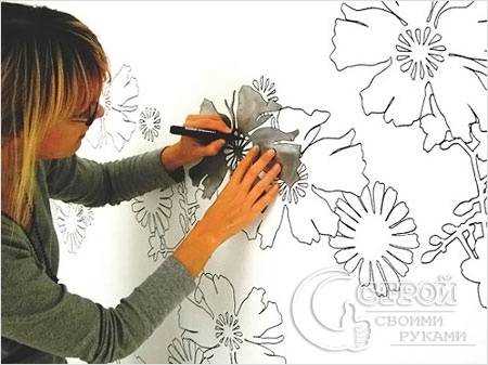 Трафарет является самым простым и творческим способом украшения стен своими руками, поскольку он может быть изготовлен самостоятельно и иметь абсолютно любой вид. Как правило, для этого используются такие материалы, как ватман, картон или любые виды плотной бумаги.