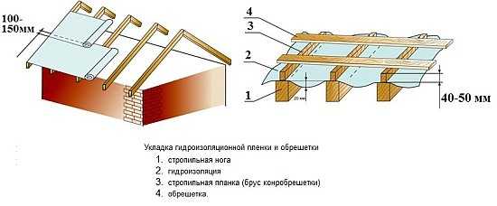 Рисунок 4. Пример монтажа обрешетки и гидроизоляции